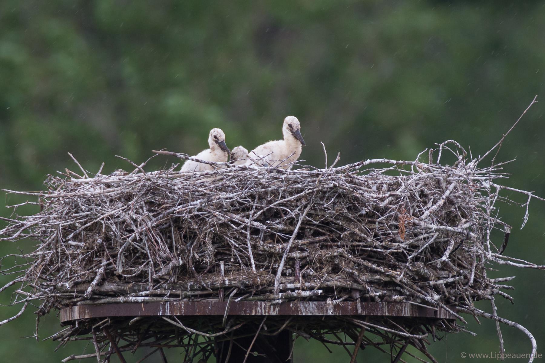 Von den anfänglich vier Küken am Anglerweg hat aber leider nur eines überlebt. Damit geht die "Pechsträhne" dieses Brutpaares weiter, nachdem auch letztes Jahr nur eines von vier Küken überlebt hatte. Am Nestrand hing einige Wochen lang eines der toten Küken herab.