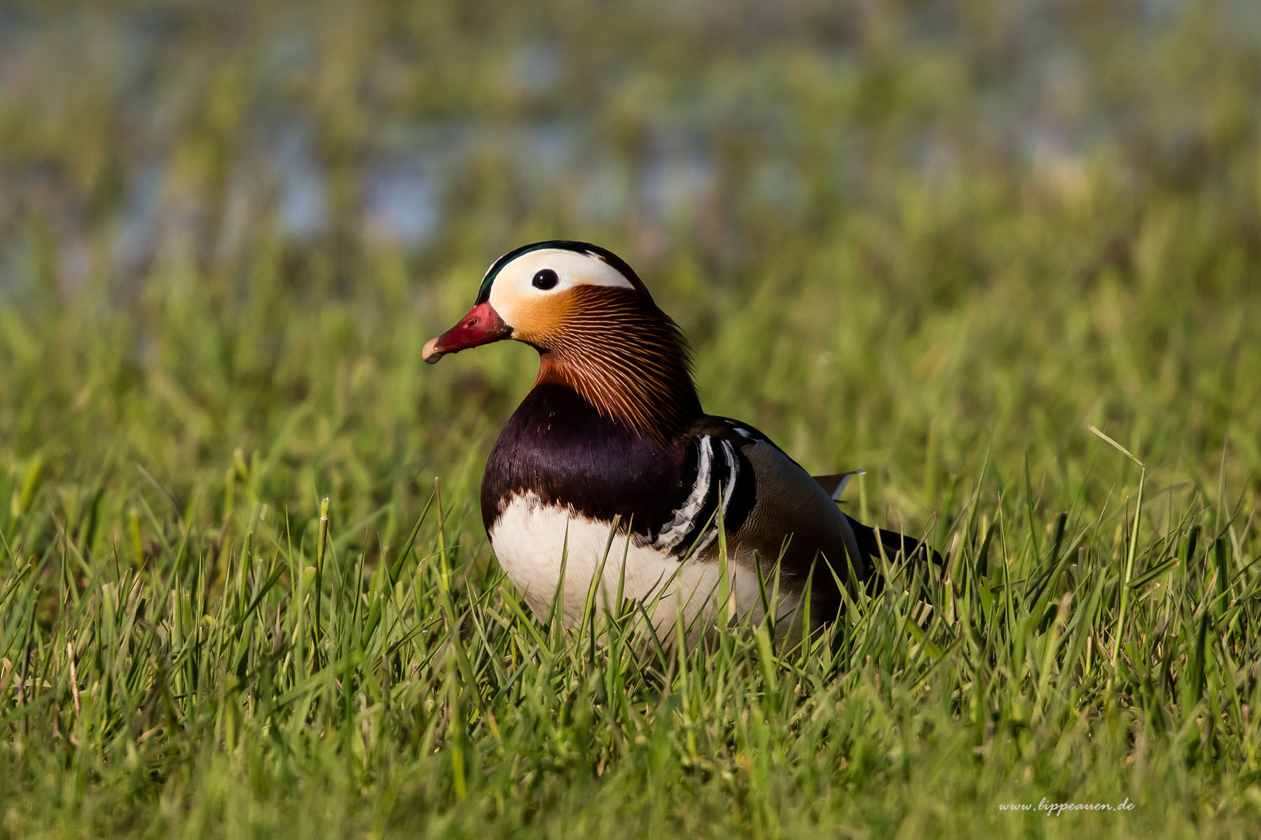 Ein Mandarinentenerpel besucht regelmäßig im Frühjahr die Ahsewiesen. Canon 5DsR + EF 500 f4 II + EF2x bei 1000mm Brennweite.