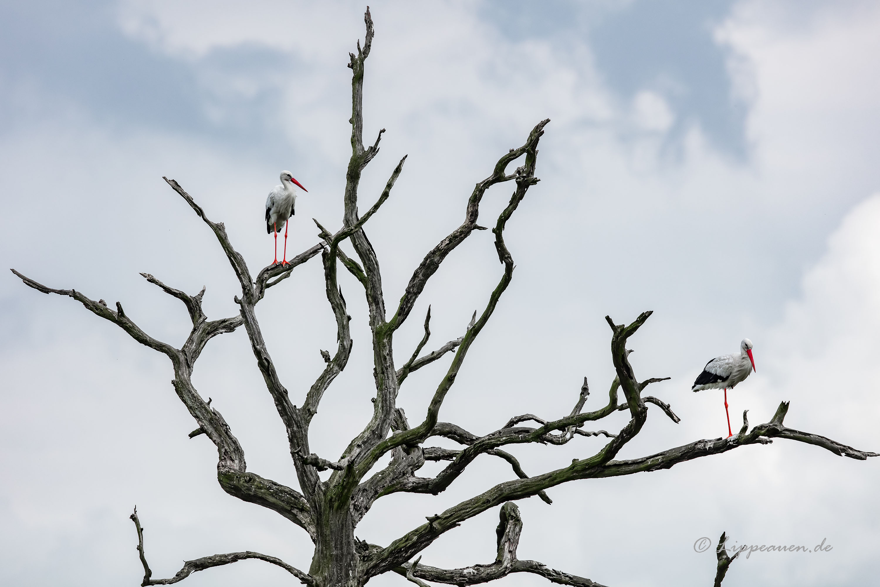 Ein knorriger alter Baum dient den Störchen als Warte. Im Januar 2018 ist dieser allerdings bei Sturm umgestürzt. Canon 5DsR + EF 100-400.