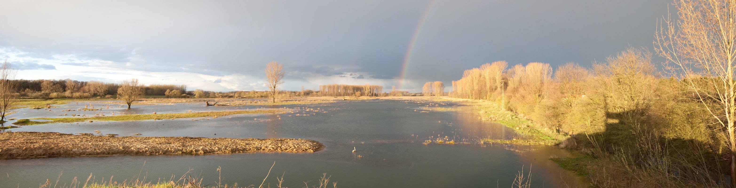 Die zweite Warte befindet sich am sog. Anglerweg westlich von Hellinghausen. Von dort hat man einen weitläufigen Blick auf die zeitweise überschwemmten Lippewiesen und ein Storchennest. Hier tümmeln sich insbesondere im Frühjahr viele Kanadagänse, Blässhühner, Enten etc. In der Nähe ist auch eine grössere Brutkolonie von Graureihern - leider unzugänglich in einem Wald - und somit sind oft Graureiher und manchmal auch Silberreiher in der Klostermersch zu sehen.